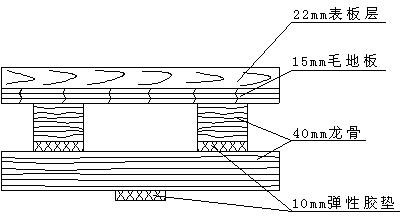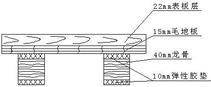 (1)結(jié)構(gòu)Ⅰ:表板+毛地板+龍骨+彈性膠墊+龍骨+彈性膠墊