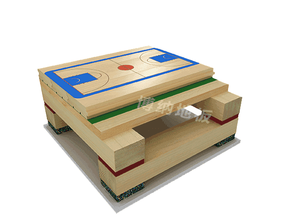 雙層龍骨雙減震結(jié)構(gòu)采用LVL或?qū)嵞君埞钦w懸浮式安裝,完全符合德國(guó)DIN標(biāo)準(zhǔn),用特定螺栓連接上下龍骨及彈性墊,在上下龍骨之間加彈性減震墊,既保證系統(tǒng)結(jié)構(gòu)的高穩(wěn)定性,避免龍骨直接接觸容易產(chǎn)生響聲,又能保證龍骨間垂直相互運(yùn)動(dòng),提供充足的彈性,提高運(yùn)動(dòng)性能。整體表現(xiàn)出堅(jiān)固耐用、彈性十足的優(yōu)點(diǎn)。是上新型且使用更多的結(jié)構(gòu)類型,適用于高規(guī)格、專業(yè)性強(qiáng)的比賽及訓(xùn)練場(chǎng)館、職業(yè)籃球俱樂部。